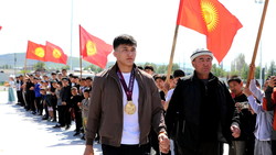 «Спустя 26 лет успех вновь повторился»: На площади в Манасе встретили чемпиона Азии по греко-римской борьбе Асана Жанышова