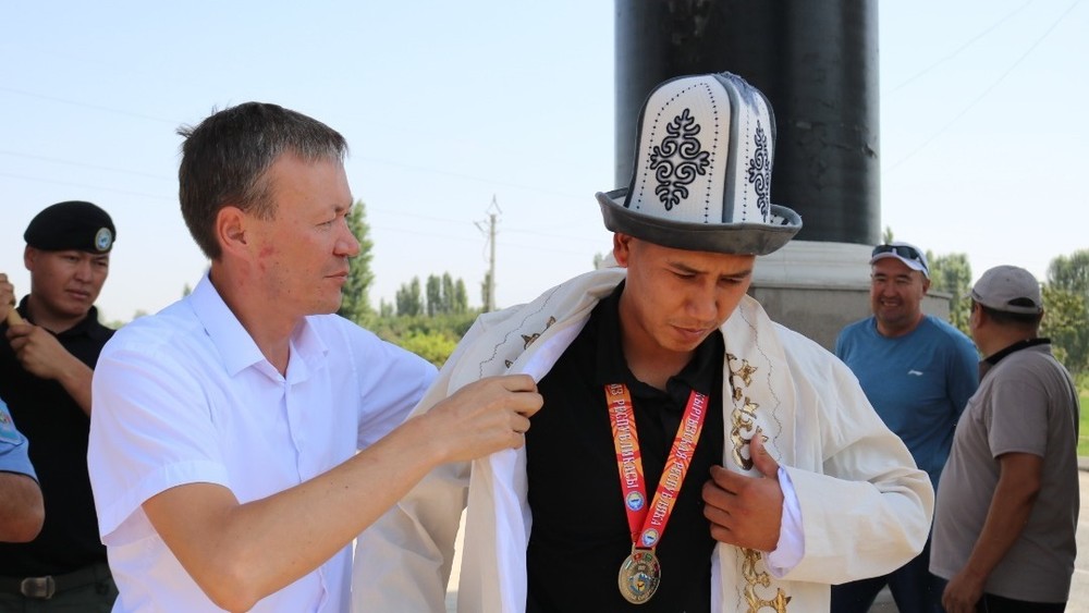 В городе Жалал-Абад встретили чемпиона Медетбека Эргеш уулу. Фото