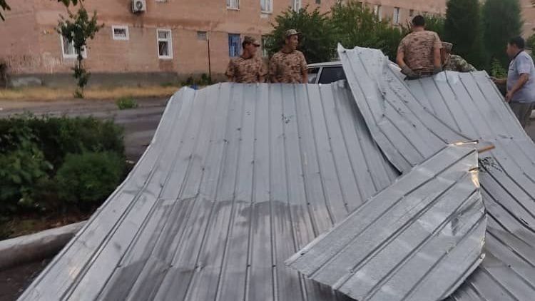 В Жалал-Абаде из-за сильного ветра листовое железо с крыши домов упало на два авто